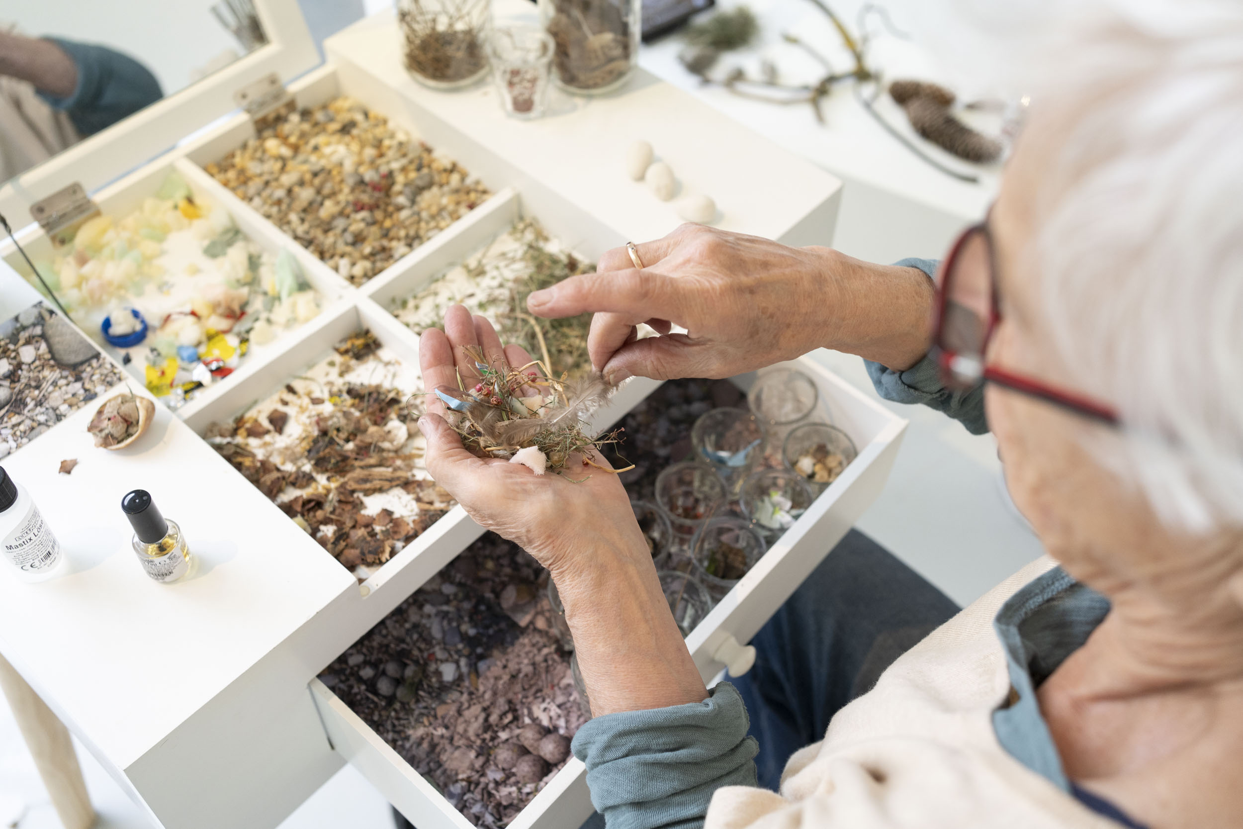 Trifft man Lena Violetta Leitner ausnahmsweise alleine an, verweisen sogleich die Kunstwerke und Installationen um sie herum auf das, was sie als Künstlerin ausmacht. „Zusammenarbeit zieht sich als roter Faden durch meine Arbeit“, lacht die 1986 in Graz geborene und mittlerweile in Wien lebende Künstlerin.